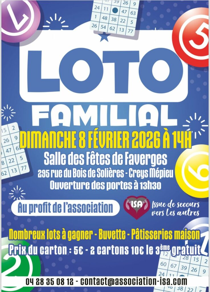 Comme chaque année, Isa a organisé son loto pour financer ses activités. Entre autres, c’est grâce à cela que nous partons tous ensemble en vacances chaque année. Près de 160 personnes ont été au rendez-vous pour un après-midi récréatif et familial.